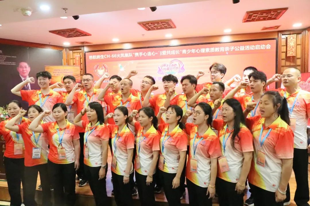 每一位成员面向青少年心理素质教育公益旗帜宣誓并签名,郑重承诺不怕苦不怕累,不怕拒绝与打击,全力以赴,为青少年心理素质教育公益活动全力以赴。